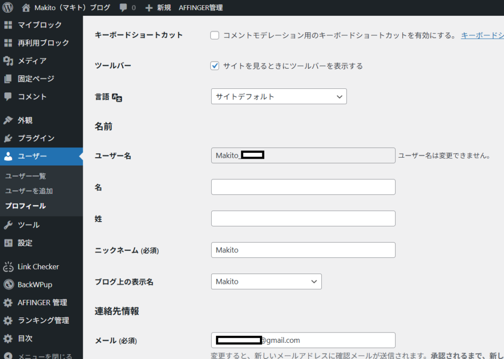 AFFINGER6を導入したとき、私も「プロフィールってどこで設定するの?」と30分以上悩みました(笑)。