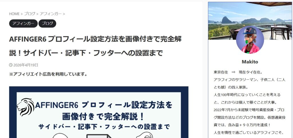 でも、順番さえ間違えなければ10〜15分で設定完了できます。この記事では、実際にAFFINGER6を使っているアラフィフブロガーの私が、プロフィール設定を一から丁寧に解説します!