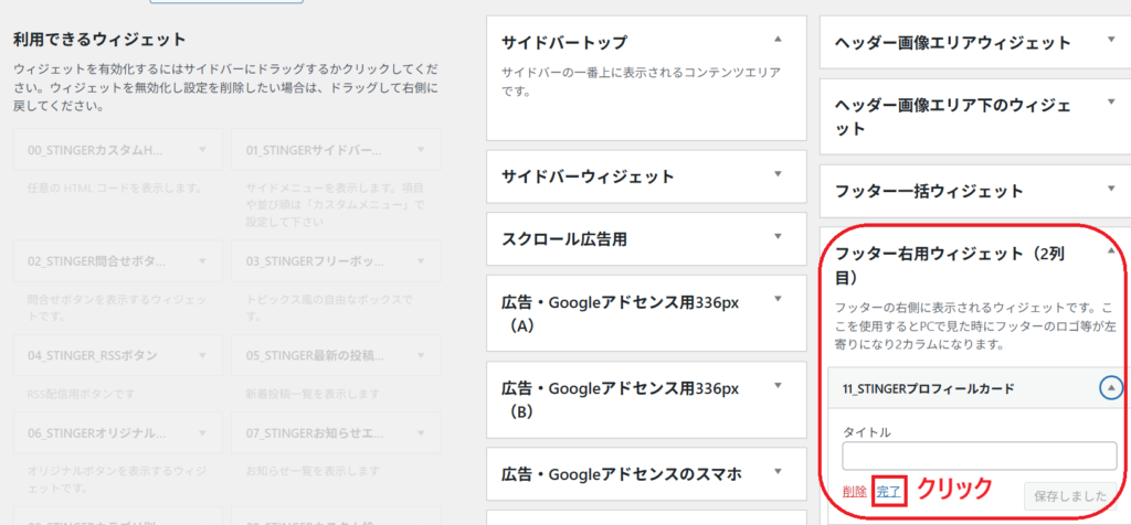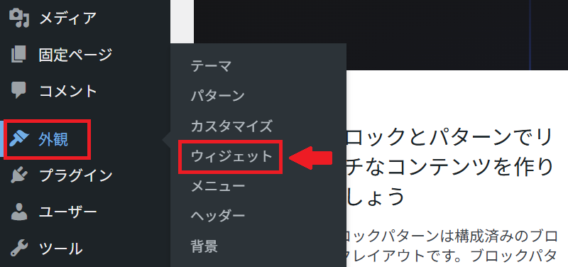 STEP3 プロフィールカードをサイドバーに設置する 外観→ウィジェット